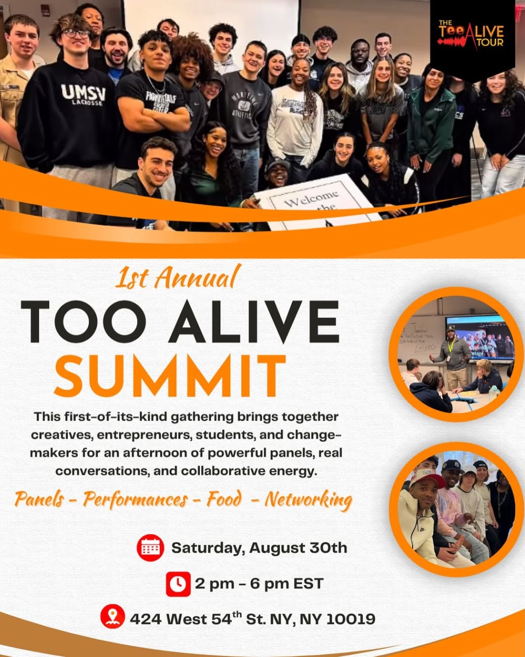 The Too Alive Summit is a high-energy experience hosted by The Too Alive Tour, designed to inspire, educate, and activate the next generation of leaders. Held at Prime Produce in Midtown NYC, this inaugural event brings students together with dynamic creatives, entrepreneurs, and educators to explore purpose, identity, and the evolving world of work.
