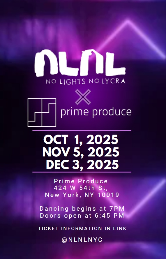 No Lights No Lycra offers a welcoming space for people to dance freely in a friendly, non-threatening, drug- and alcohol-free environment. With the lights dimmed, everyone can dance without worrying about their appearance. Please refrain from using phones on or around the dance floor. We hope you enjoy this opportunity to dance independently in the company of others. Talking is discouraged to enhance the experience.